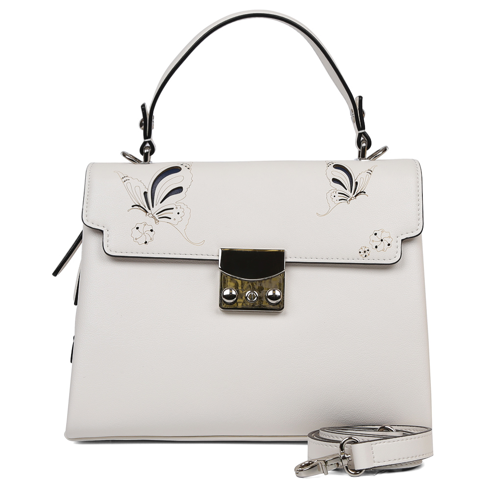 Элегантная женская сумка-тоут от итальянского бренда Leo Ventoni выполнена из натуральной плотной кожи, которая держит форму и имеет невероятно мягкую на ощупь фактуру. Классический белый цвет в сочетании с дизайнерской перфорацией на коже превращают модель в ультрамодный аксессуар, который понравится любительницам как классических, так и современных стилей. Уникальное крепление ручки и лаконичный дизайн подчеркнут ваш элегантный и утонченный вкус. Сумка имеет одно вместительное отделение, закрывающееся на прочный замок. Внутри сумки вы с легкостью сможете расположить свой сотовый телефон и другие женские мелочи с помощью удобных карманов, один из которых на молнии. Модель компактна и не вмещает документы формата A4. В комплекте аксессуар имеет тонкий кожаный ремешок, благодаря которому сумку можно носить на плече.
