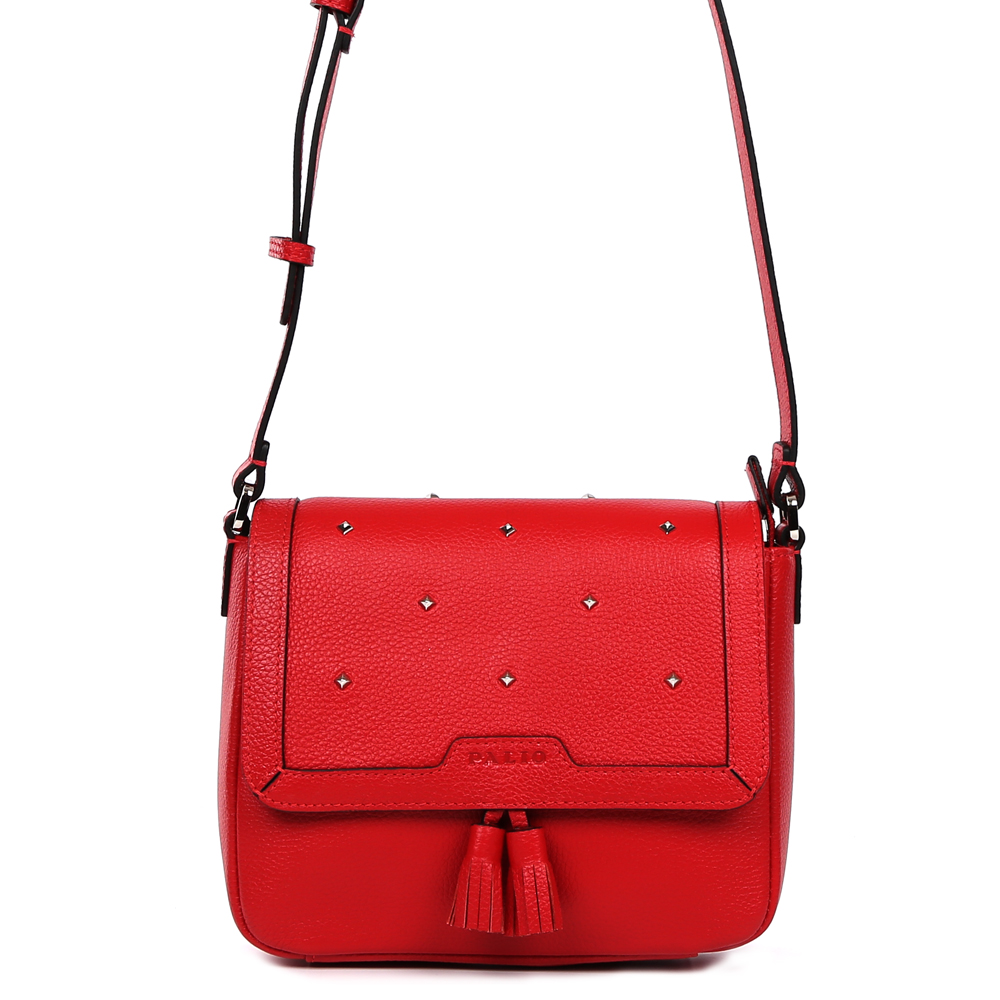 Стильная женская сумка кросс-боди Palio выполнена из натуральной пористой кожи, которая держит форму и имеет мягкую фактуру. Насыщенный красный цвет, кожаный брелок-кисточка и изысканная россыпь гвоздиков-хольнитенов помогут дополнить и завершить ваш элегантный образ. Аккуратная тонкая ручка и чернвя кожаная строчка превращают модель в роскошный аксессуар, подходящий для любительниц как классических, так и современных стилей. Кросс-боди имеет одно вместительное отделение, которое закрывается на прочную молнию. Внутри сумки вы с легкостью сможете расположить свой сотовый телефон и другие женские мелочи с помощью удобных карманов. Модель не вмещает формат A4, длина ручки регулируется.