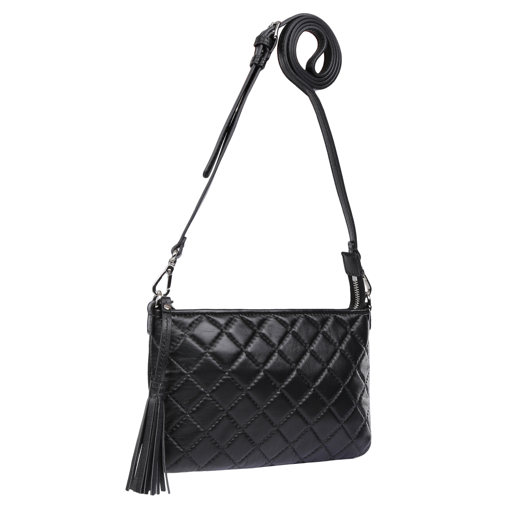 Классический черный цвет, геометрическая стежка и лаконичная форма – эта женская сумка из новой коллекции Palio создана, чтобы стать верным "спутником" этого модного сезона, ведь лучшего варианта для вечерних ужинов и повседневных встреч с друзьями просто не найти! Невероятна мягкая кожа, стильный брелок-кисточка - такой аксессуар добавит утонченности даже самому простому образу. Модель имеет одно внутреннее отделение, которое закрывается на прочный и удобный замок. На внутренних боковых стенках дизайнеры разместили карман для различных женских мелочей. Модель компактна и не вмещает размер А4, длина плечевого ремня регулируется.