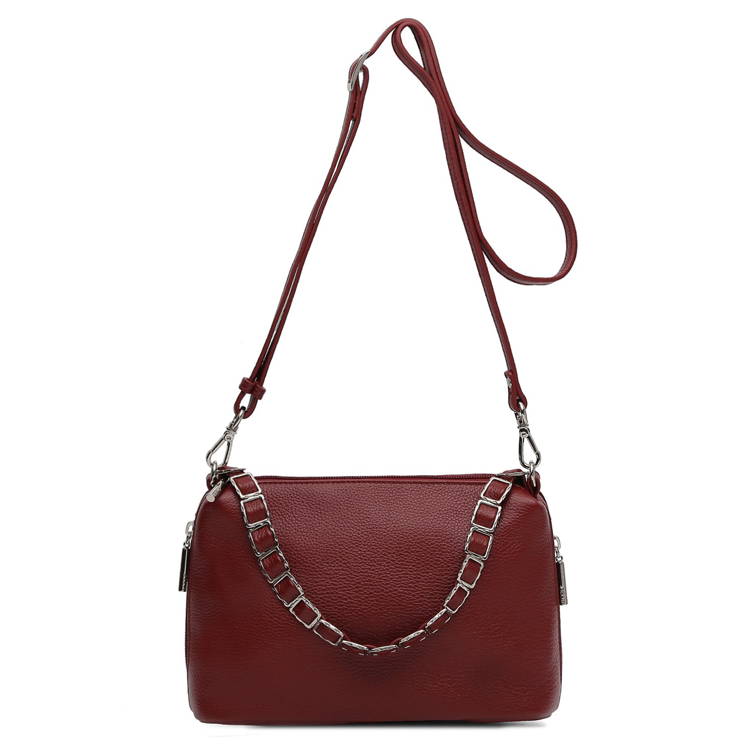 Стильная сумка через плечо от бренда PALIO выполнена из натуральной мягкой зернистой кожи в элегантном бордовом оттенке. Аксессуар имеет ручку, съемный плечевой ремень, одно отделение и 2 внешних боковых кармана на молнии. Внутри расположены 2 отсека разделенные карманом на молнии и 2 кармана для мелочей.