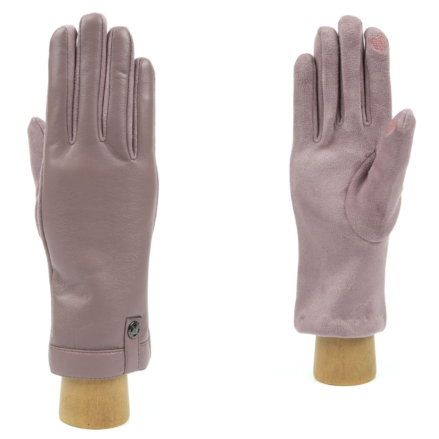Комбинированные женские перчатки FABRETTI в оттенке пыльной розы сочетают искусственную замшу на ладонной стороне и экокожу нежной фактуры – на лицевой части. Перчатки хорошо сидят на руке и отлично сохраняют тепло. Снабжены функцией Touch Screen, что позволит пользоваться сенсорными устройствами, не снимая их. Будут гармонично смотреться с куртками, пуховиками и пальто. Прекрасный вариант для межсезонья и европейской зимы. Цвет фурнитуры – черненый никель.