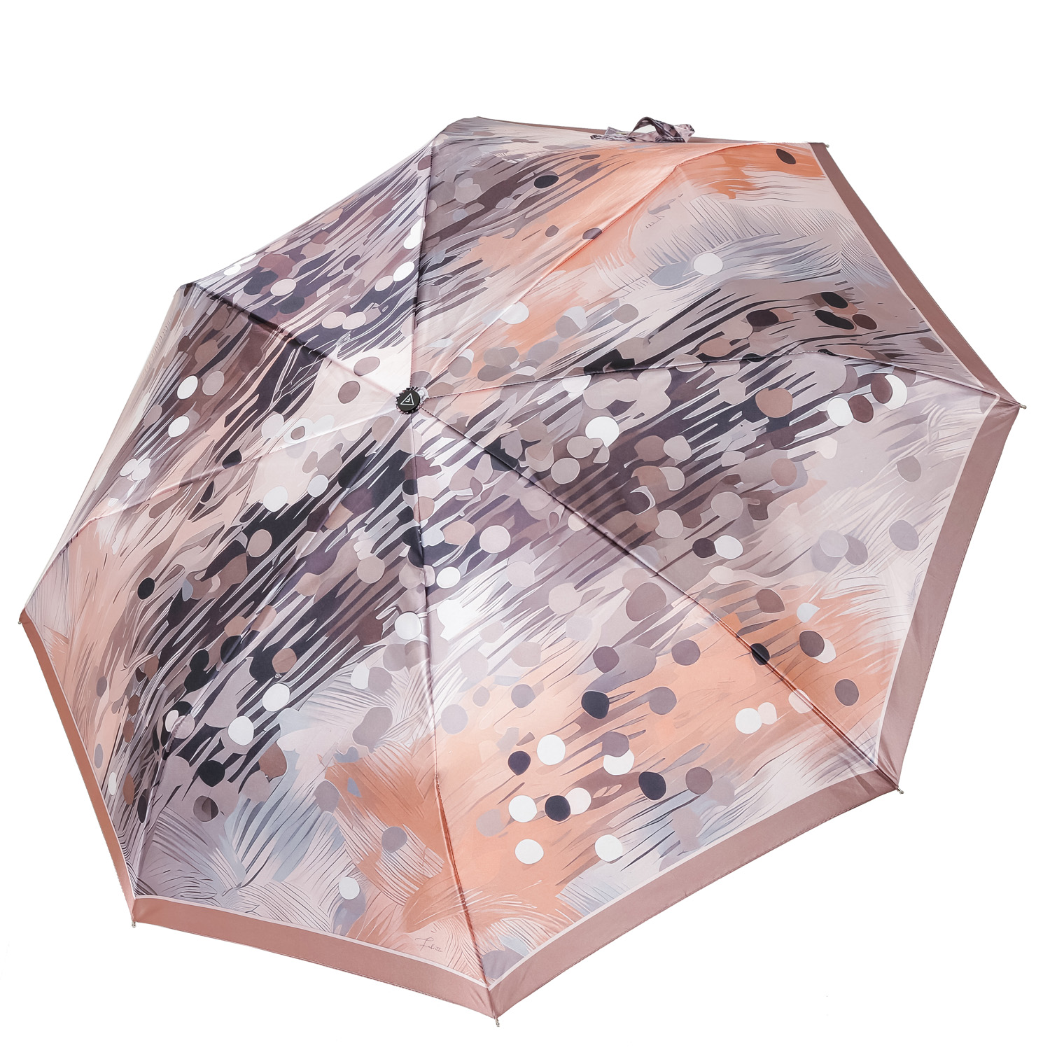 Купол зонта-автомата FABRETTI в коричнево-бежевой гамме украшен абстрактным принтом. Рисунок нанесен с помощью техники цифровой печати, которая обеспечивает долговечность изображению и точность цветопередачи. Купол выполнен из полиэстера с приятной гладкой фактурой и сатиновым блеском. Вода, попадая на такой купол, превращается в капли и легко скатываться вниз.