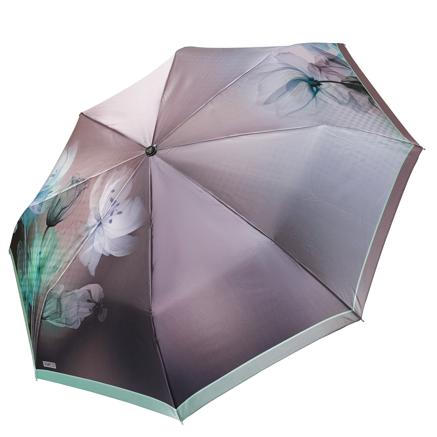 Купол зонта-автомата FABRETTI в бежевом оттенке украшен дизайнерским принтом с изображением цветов и по краям декорирован бежево-зеленым кантом. Рисунок нанесен с помощью техники цифровой печати, которая обеспечивает долговечность изображению и точность цветопередачи. Купол выполнен из полиэстера с приятной гладкой фактурой и сатиновым блеском. Вода, попадая на такой купол, превращается в капли и легко скатываться вниз.