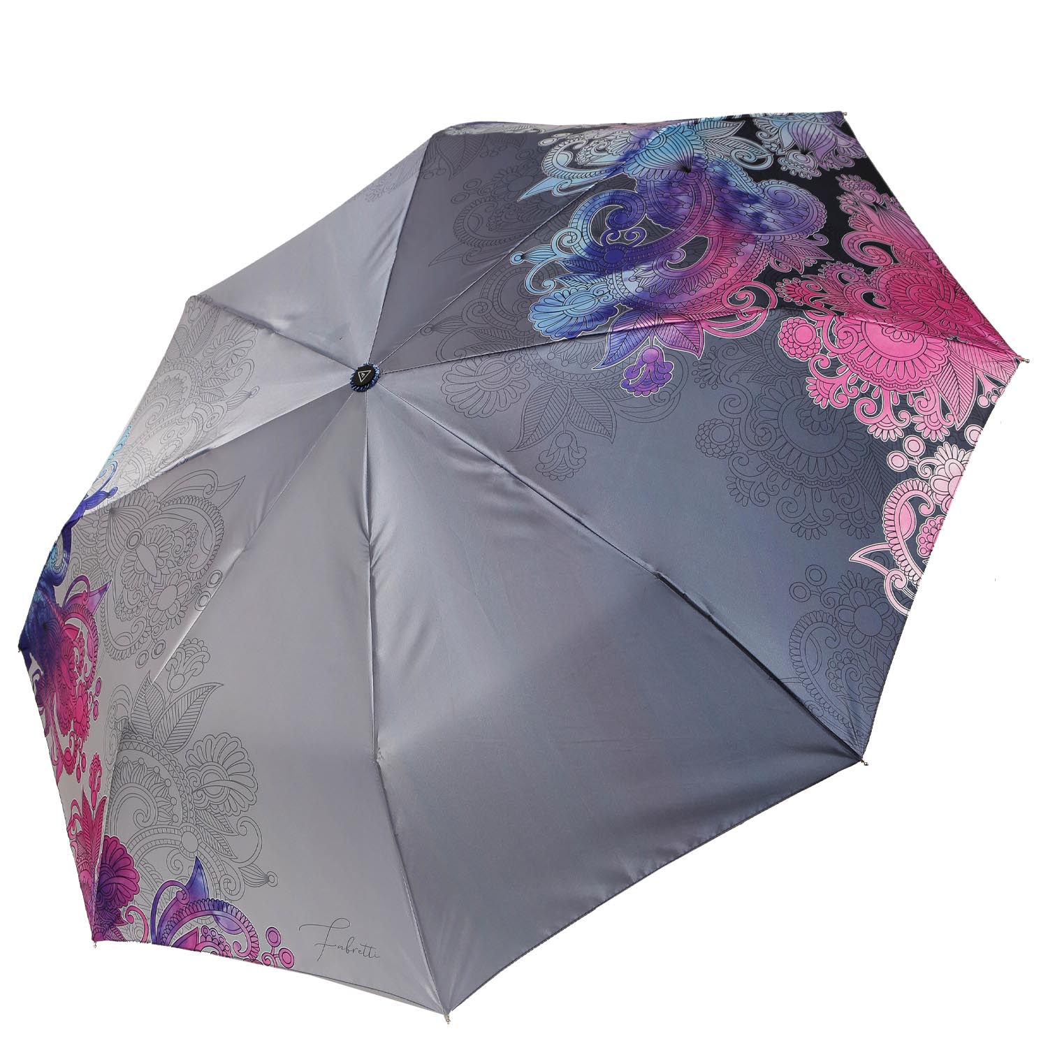 Купол зонта-автомата FABRETTI в сером оттенке украшен оригинальным узором пейсли. Рисунок нанесен с помощью техники цифровой печати, которая обеспечивает долговечность изображению и точность цветопередачи. Купол выполнен из полиэстера с приятной гладкой фактурой и сатиновым блеском. Вода, попадая на такой купол, превращается в капли и легко скатываться вниз.