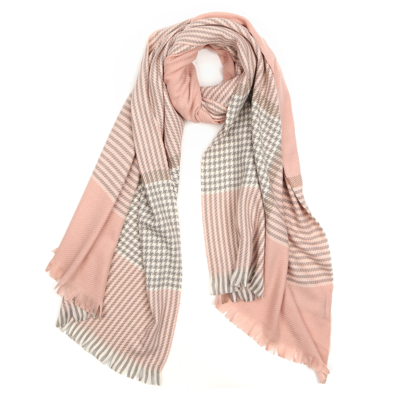 Объемный шарф FABRETTI в нежной серо-розовой гамме выполнен из качественного полиэстера, что делает изделие невероятно мягким и приятным на ощупь. Оно красиво драпируется, устойчиво к сохранению цвета и формы. Узор "гусиная лапка" делает шарф актуальной деталью, которая гармонично смотрится и в деловом образе, и в стиле casual.