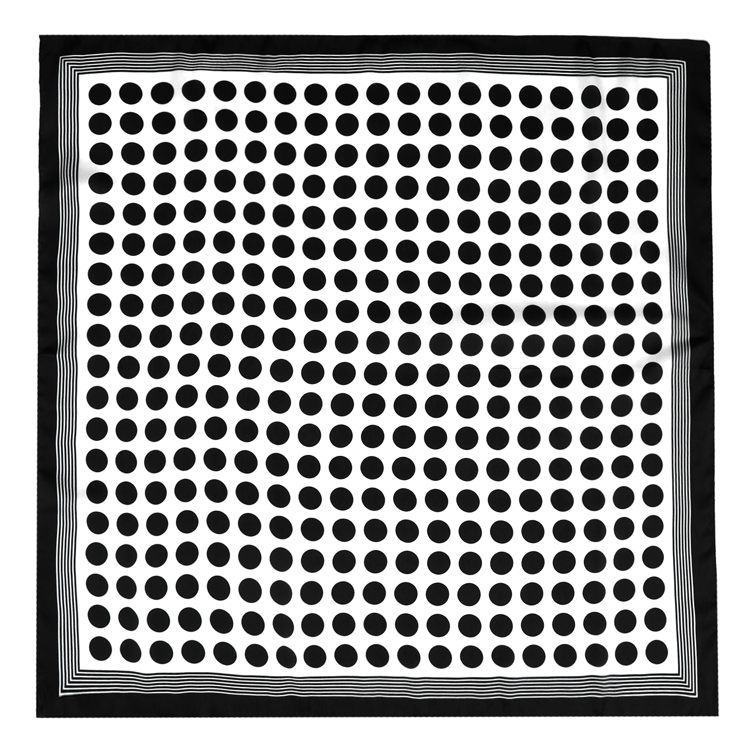 Элегантный женский платок итальянского бренда FABRETTI из искусственного шелка с классическим монохромным узором – крупным горохом в контрастной рамке из тонких линий.