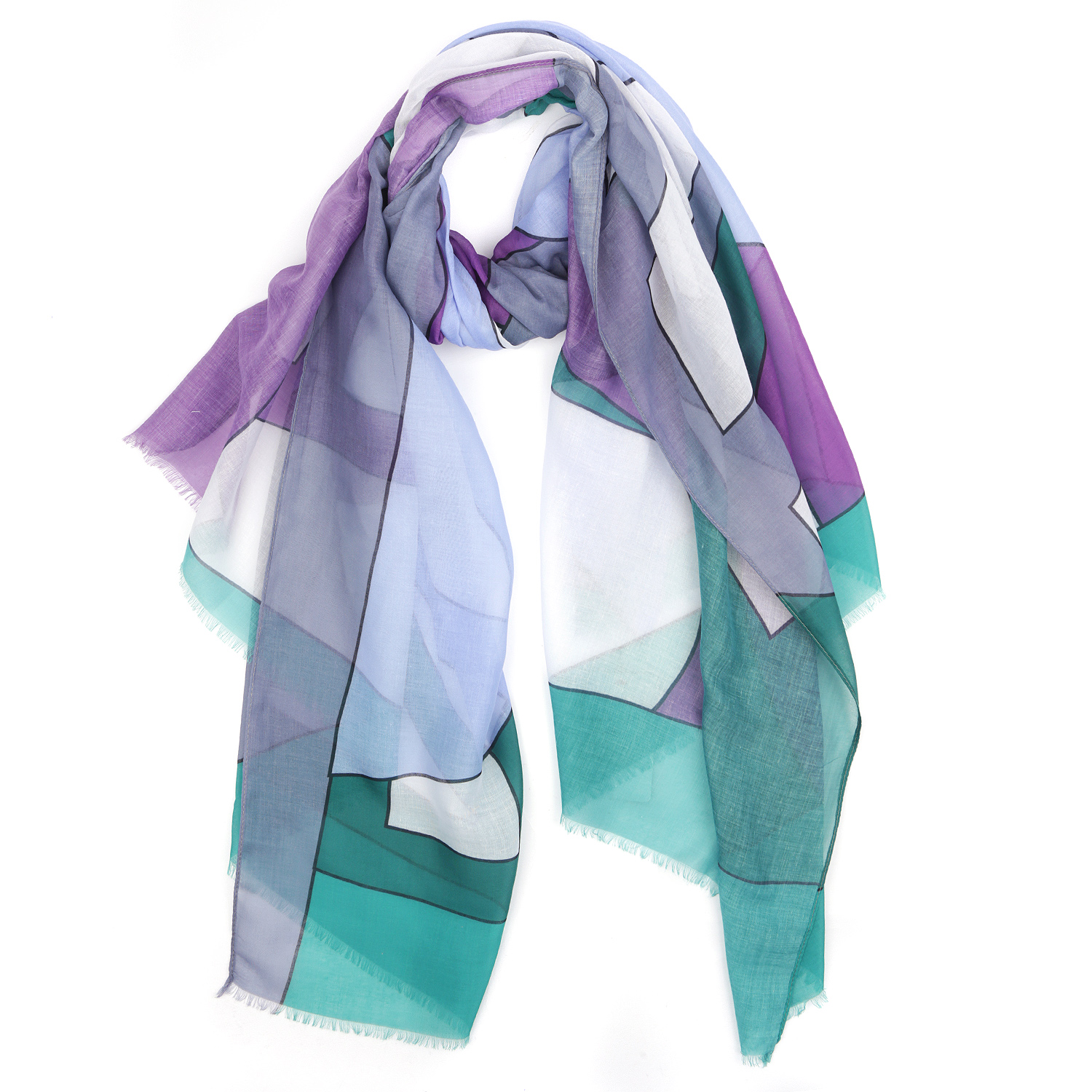 Эффектный шарф FABRETTI с первого взгляда обращает на себя внимание и станет заметной деталью в образе. Основой служит яркий абстрактный принт, поддержанный сочетанием оттенков фиолетового, голубого, изумрудного и серого. Аксессуар выполнен из современного материала, приятного на ощупь. Изделие почти не мнется и не блекнет, поэтому надолго сохранит презентабельный вид.
