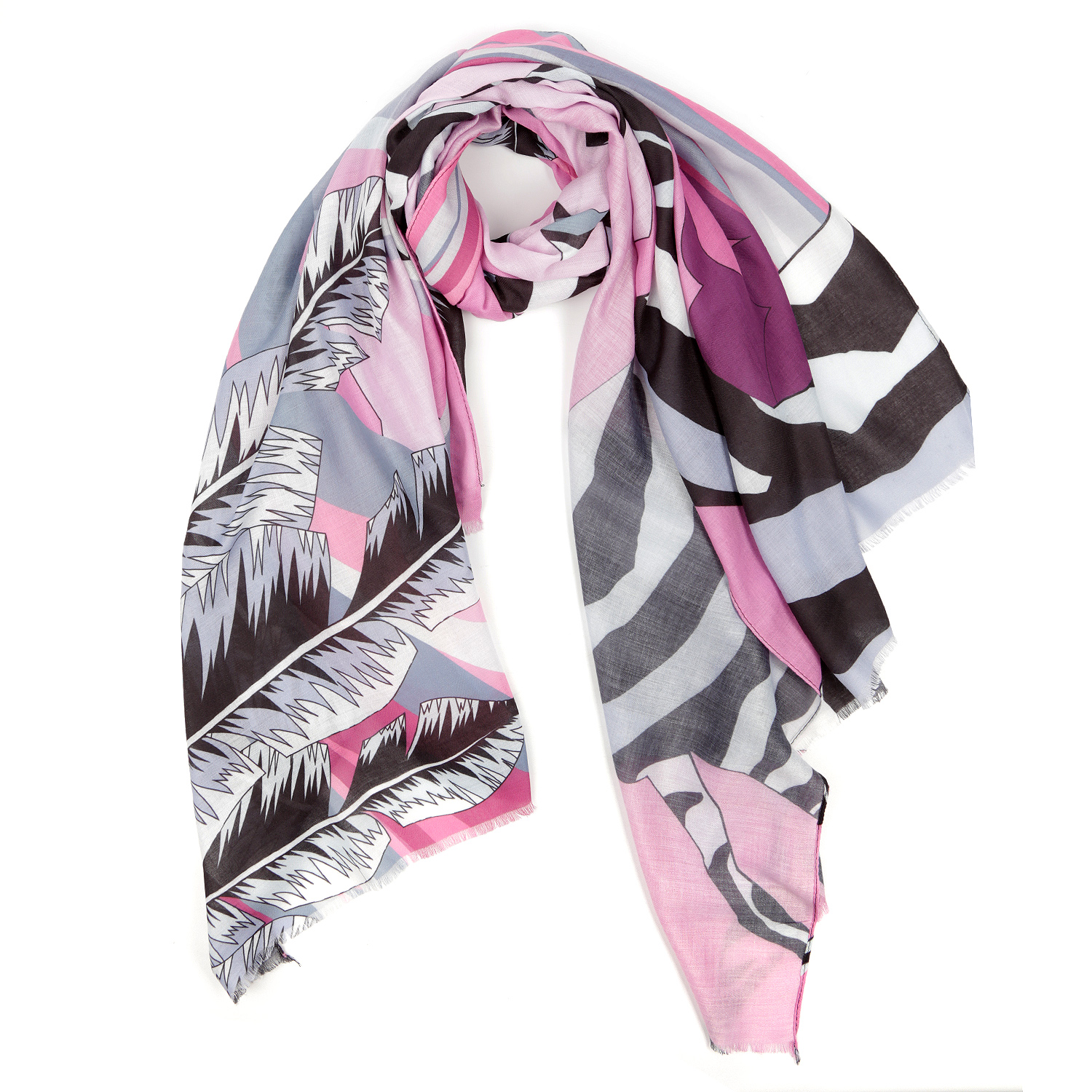 Стильный шарф FABRETTI обладает легкой текстурой и дополнит любой образ. Изысканные оттенки в лиловых тонах в сочетании с эффектным дизайнерским узором придают изделию особую выразительность. Аксессуар выполнен из качественного полиэстера, обладающего мягкостью, лёгкостью, устойчивостью к сохранению цвета и формы.