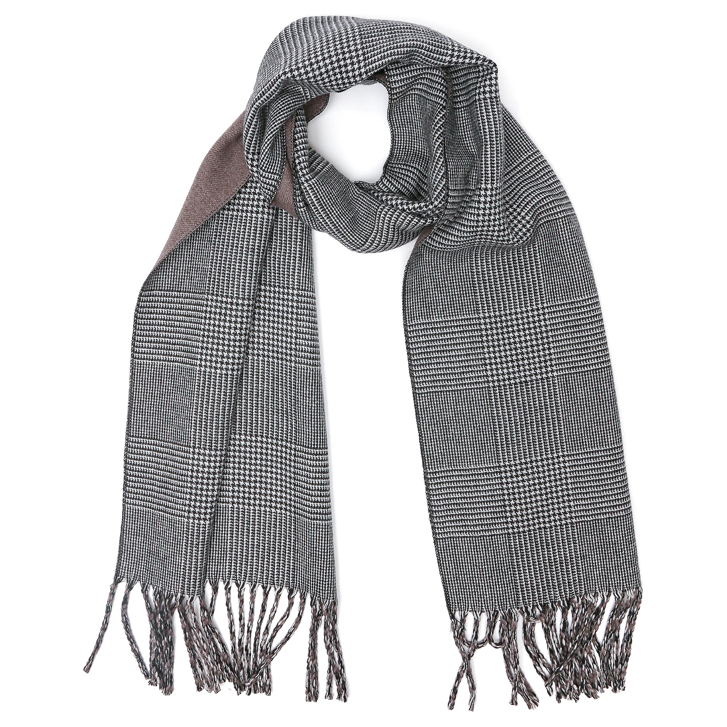 Двусторонний мужской шарф FABRETTI прекрасно дополнит любой образ. Одна сторона - в коричневом оттенке, другая украшена узором «гусиная лапка». В составе оптимально сочетаются вискоза, полиэстер и нейлон. В качестве декора выбрана традиционная клетка. Края изделия декорированы ресничками. Размер 34*180 см.