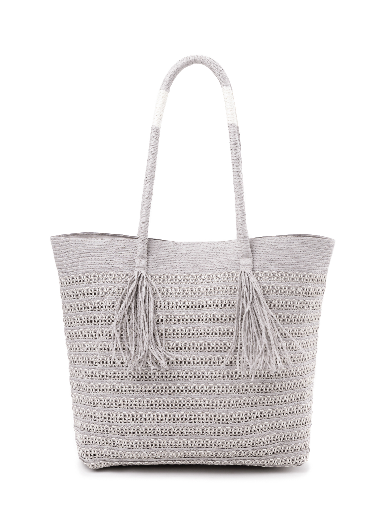 Летняя женская сумка итальянского бренда FABRETTI из плетеной соломки в сером и белом цветах. Эта легкая модель будет прекрасно смотреться и с пляжной одеждой, и с повседневным городским гардеробом.