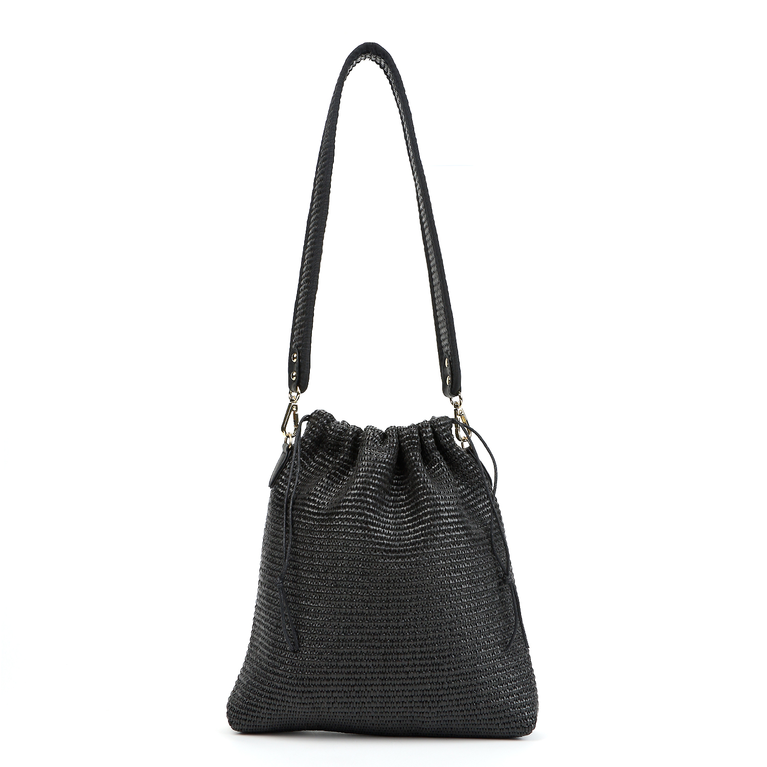 Оригинальная сумка-кисет итальянского бренда FABRETTI из искусственной соломки в черном оттенке.