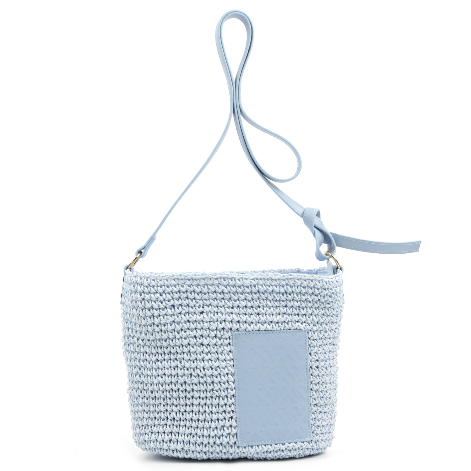 Плетеная кросс-боди FABRETTI в голубом оттенке выполнена целлюлозы - современного материала природного происхождения, отличающегося разнообразием структур и мягкостью. На лицевой стороне аксессуар декорирован аппликацией из экокожи с орнаментом из монограмм бренда. Сумка закрывается на молнию. Изящный плечевой ремень из экокожи позволяет носить аксессуар на плече, ширина - 1,5 см.