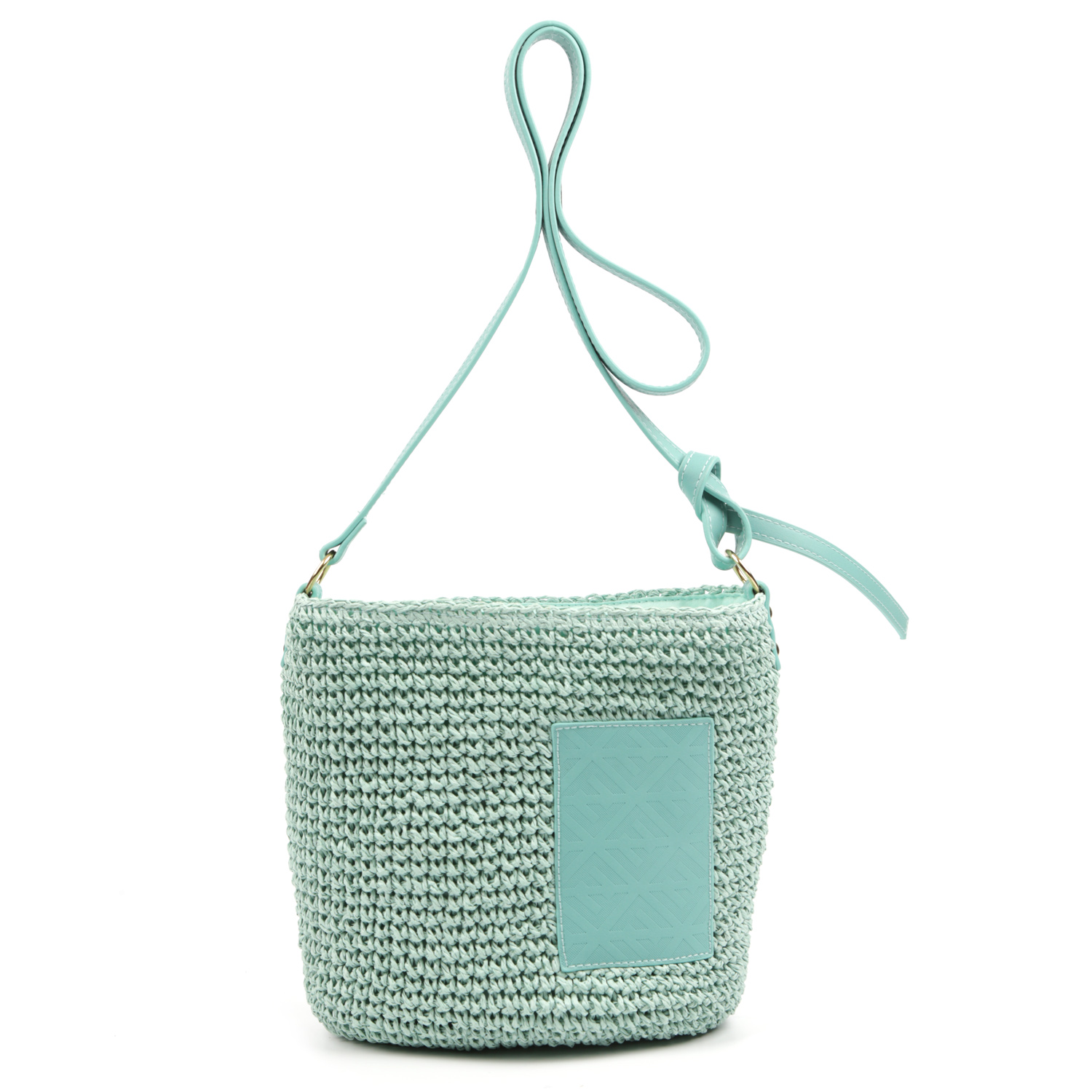 Плетеная кросс-боди FABRETTI в мятном оттенке выполнена целлюлозы - современного материала природного происхождения, отличающегося разнообразием структур и мягкостью. На лицевой стороне аксессуар декорирован аппликацией из экокожи с орнаментом из монограмм бренда. Сумка закрывается на молнию. Изящный плечевой ремень из экокожи позволяет носить аксессуар на плече, ширина - 1,5 см.