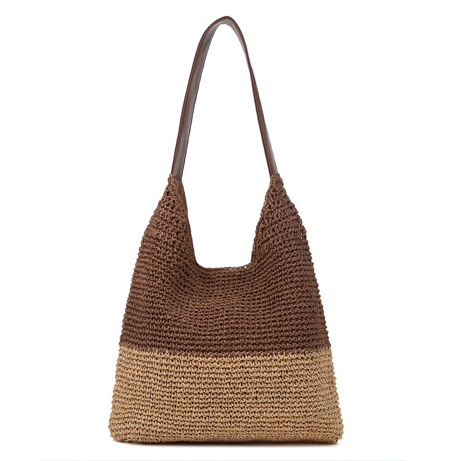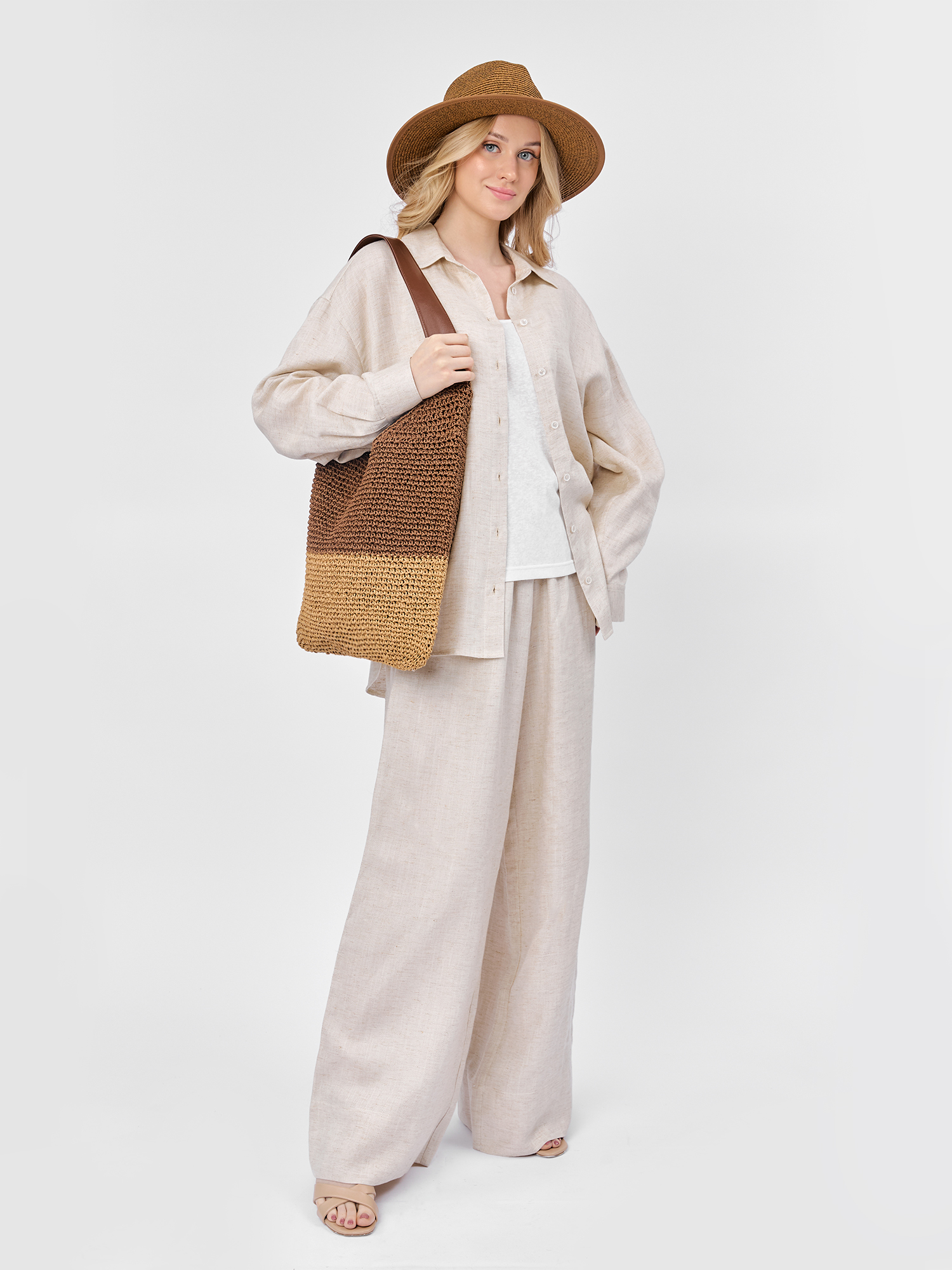 Эта модель станет отличным дополнением для образа на лето – крупный вязаный узор двух цветов – бежевого и коричневого – смотрится легко и неформально. Сумка будет отлично сочетаться с соломенной шляпкой и летними платьями или пляжным гардеробом.