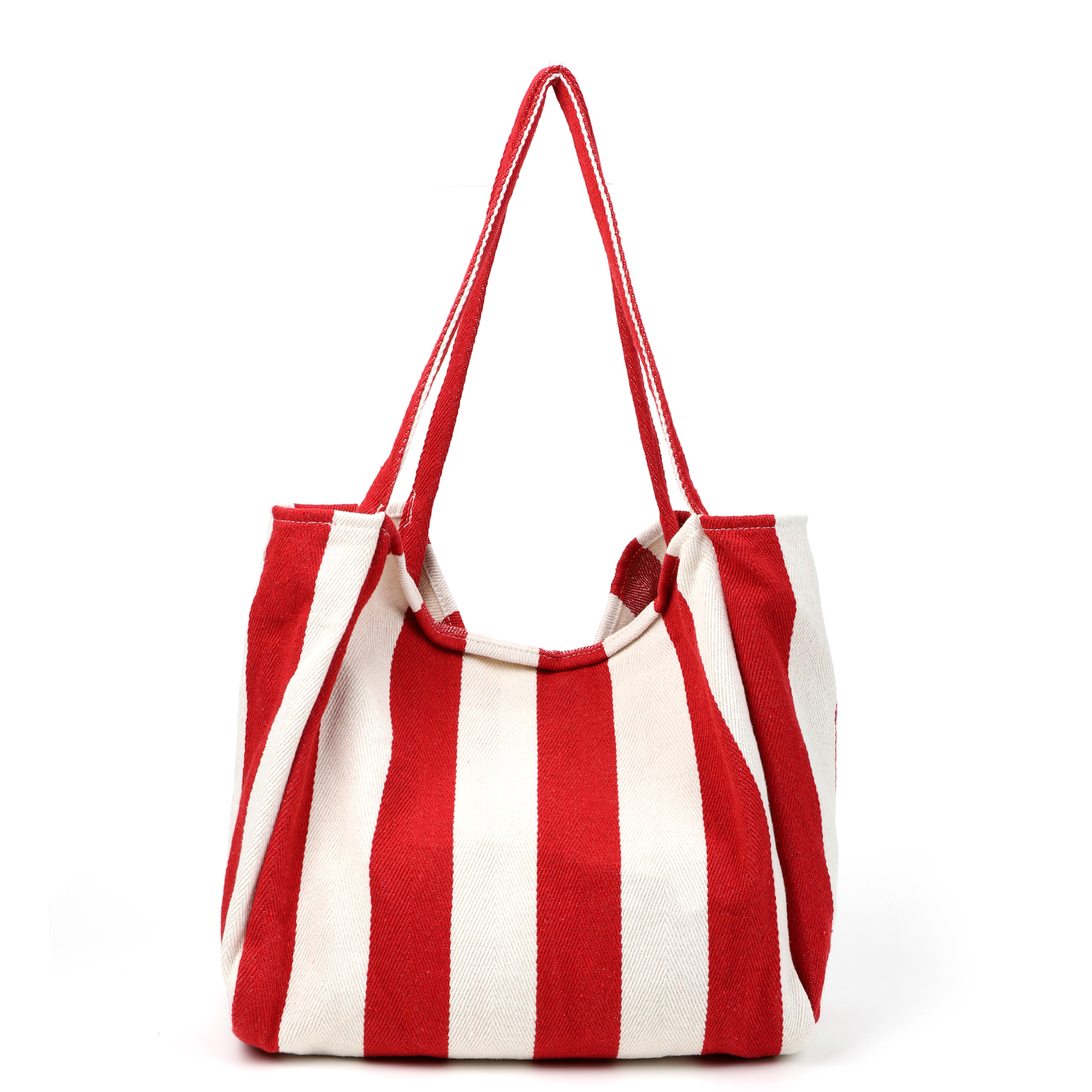 Вместительная пляжная сумка итальянского бренда FABRETTI в классическом для круизного стиля сочетании цветов – в широкую красную и белую полоску.