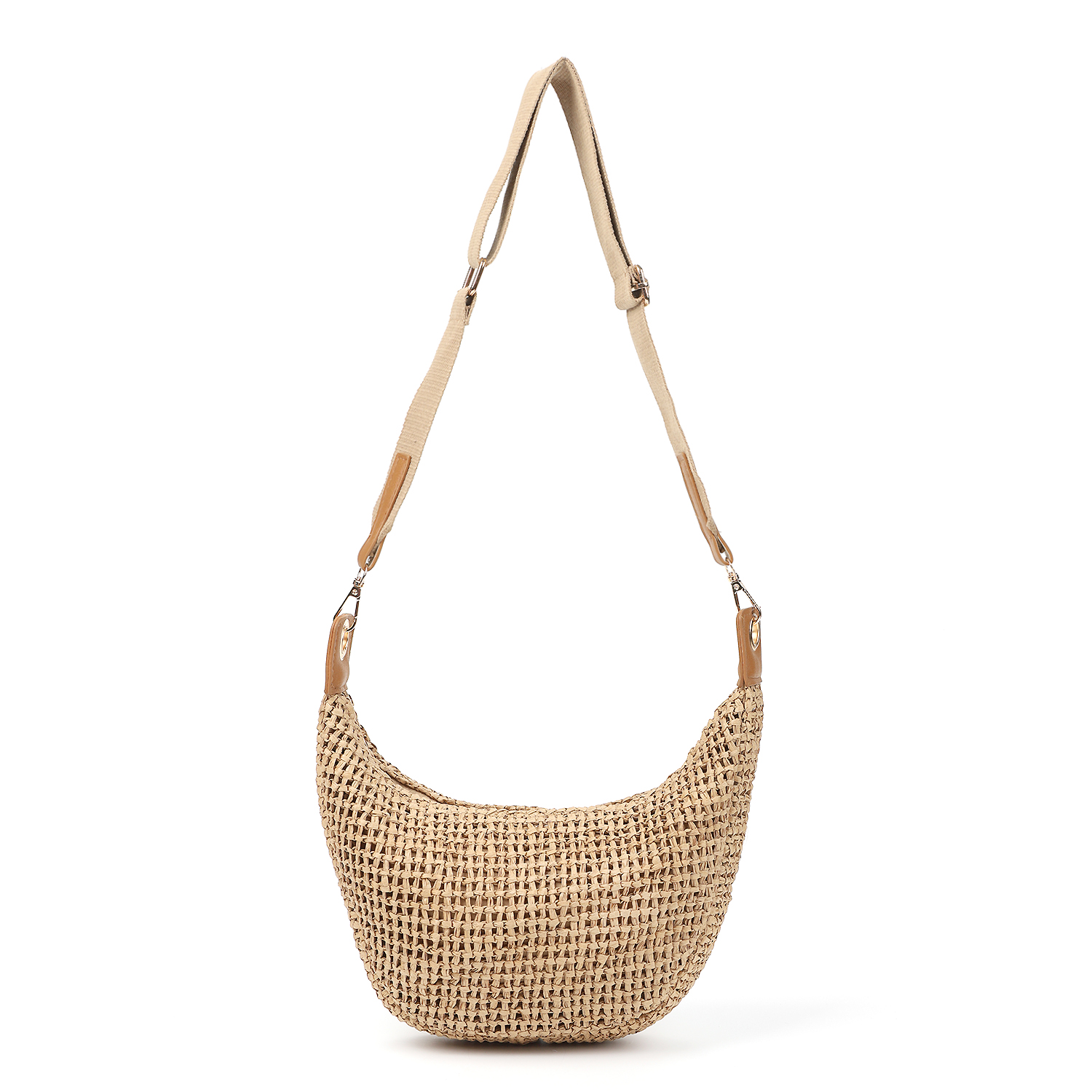 У сумки-хобо классическая форма полумесяца, съемный текстильный регулируемый ремень с отделкой из экокожи. Единственное отделение закрывается на молнию, дополнено подкладкой и небольшим карманом на молнии.