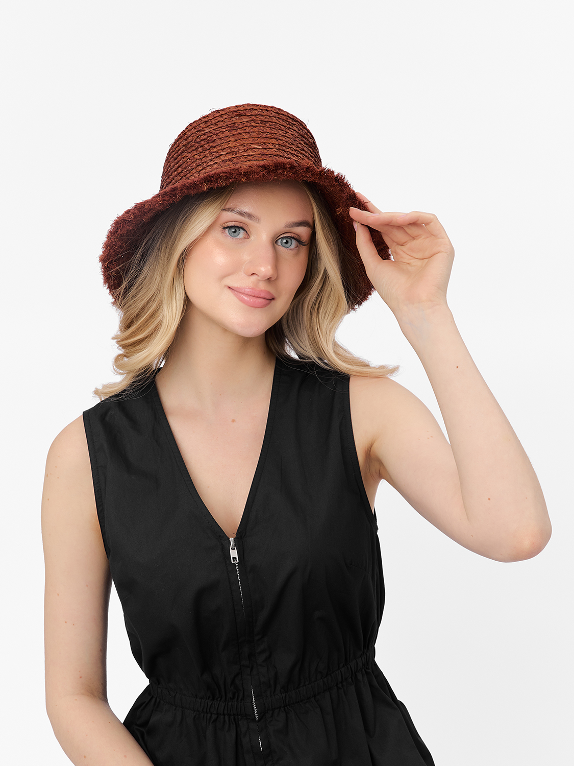 Шляпа изготовлена из натуральной пальмовой соломки – рафии. Это популярный плетеный материал, хорошо сохраняющий форму и устойчивый к влаге. Прекрасно сочетается с любым летним гардеробом.