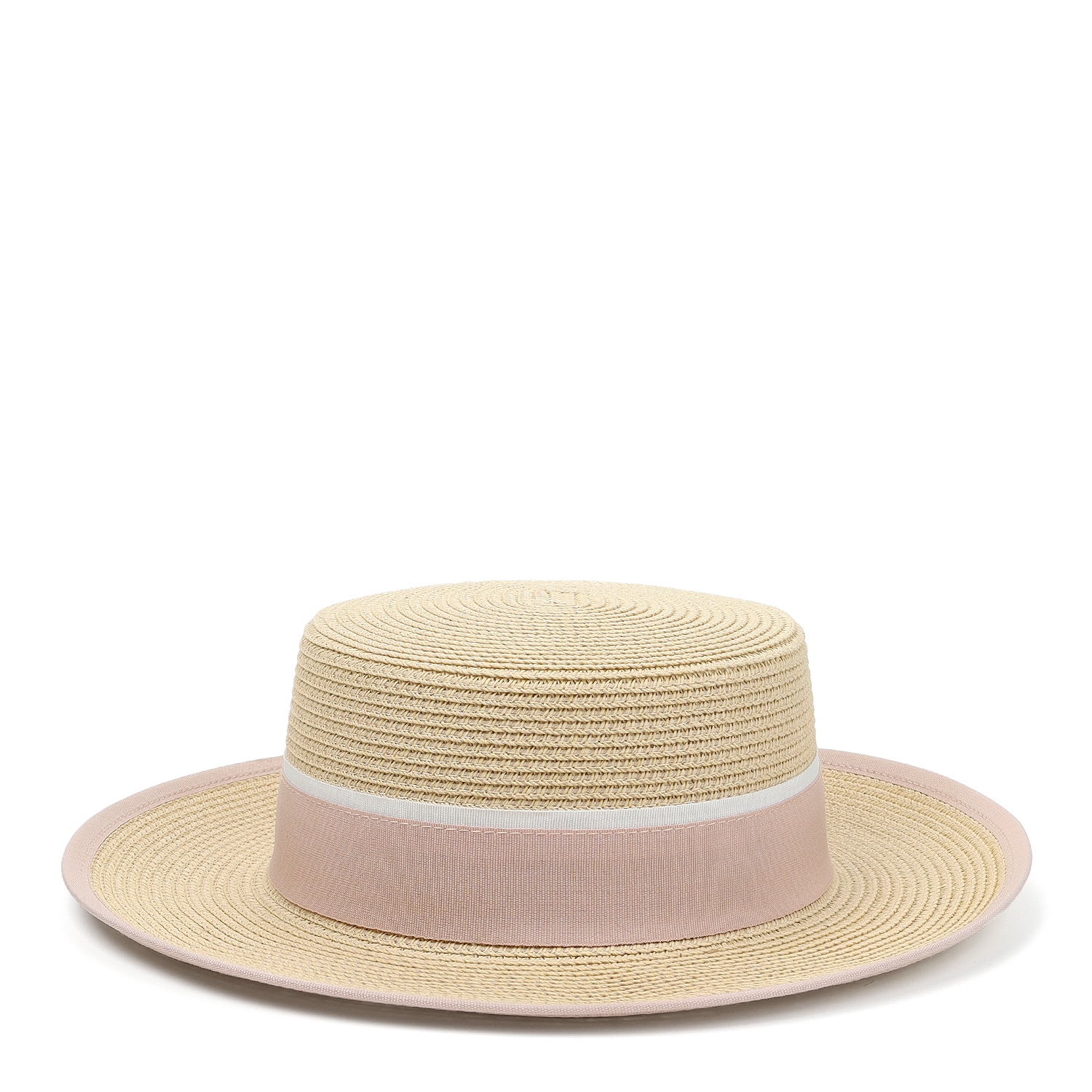 Элегантная летняя женская шляпа-канотье итальянского бренда FABRETTI в классическом соломенном оттенке. Эта шляпка с плоской тульей и узкими, прямыми полями украшена широкой текстильной лентой нежно-розового цвета на тулье и кантом из того же материала по краю полей. Внутри размер регулируется лентой.