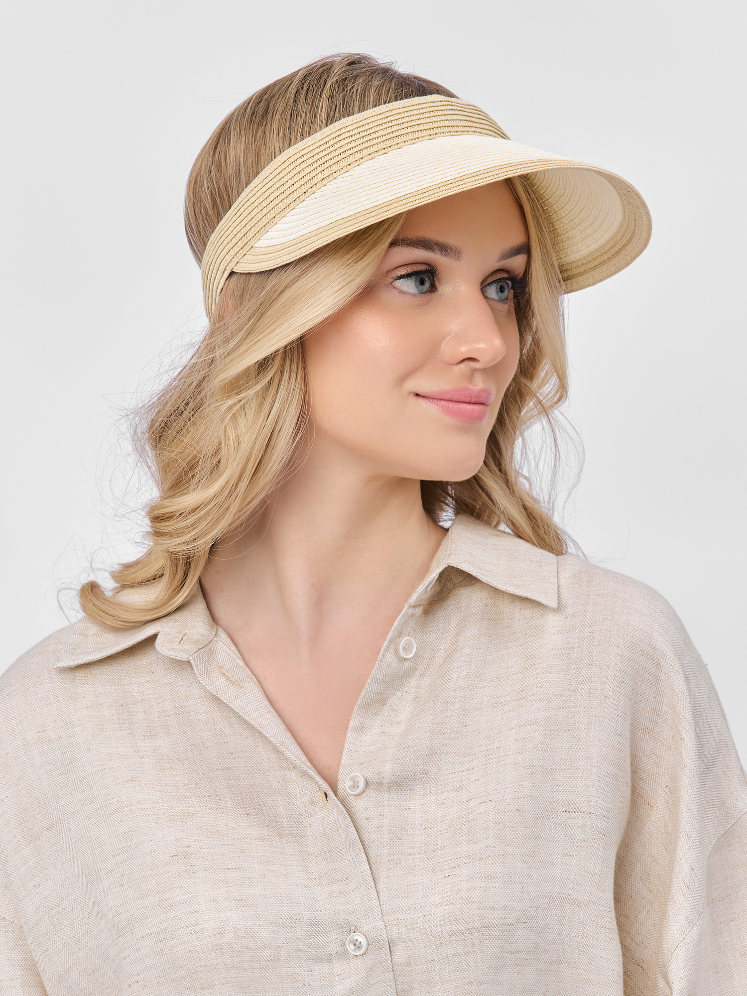 Широкий летний козырек итальянского бренда FABRETTI бежевого цвета. Визор - это ретро-аксессуар с широким козырьком - прекрасно защищает от солнца и добавляет в образ спортивной динамики.