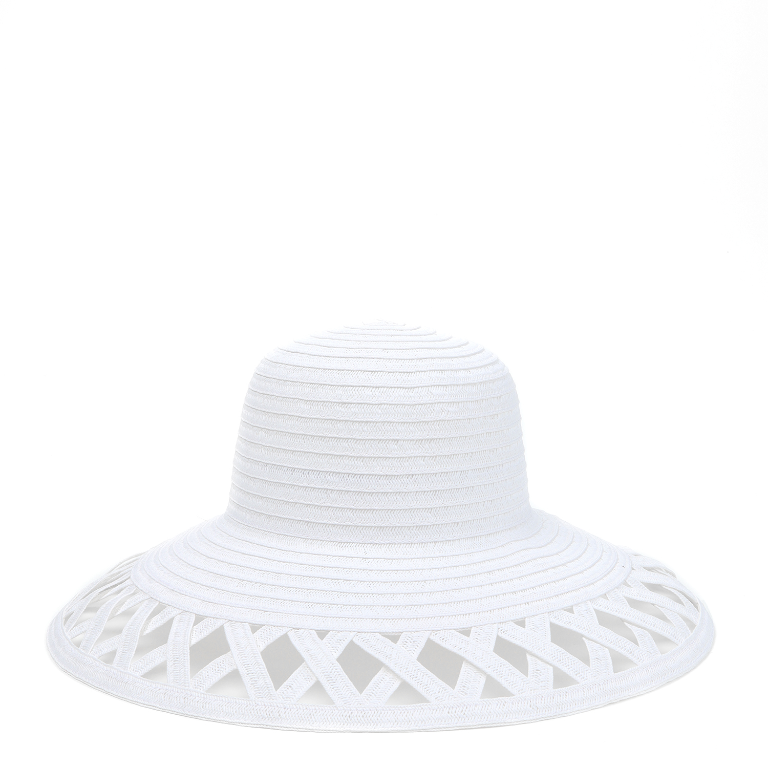 Необычная широкополая женская шляпа итальянского бренда FABRETTI в белом цвете. Эта модель с широкими опущенными полями смотрится особенно интересно благодаря узору из ромбов на полях. В солнечную погоду он добавит образу элегантной динамики благодаря игре теней.