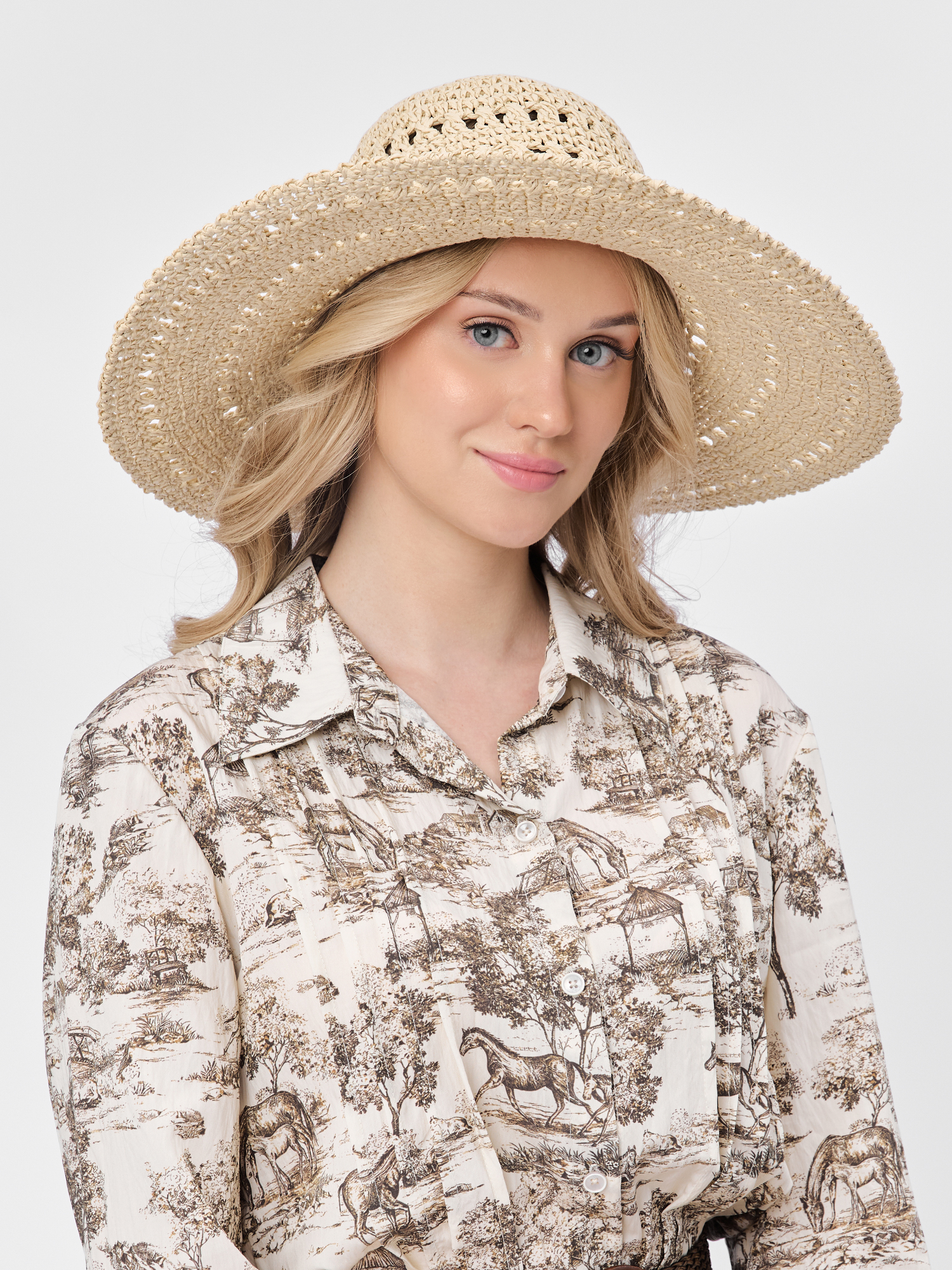 Эта необычная шляпа отлично подходит для образов в стиле бохо, сочетается с одеждой из натуральных тканей – льна или хлопка, и, конечно, с пляжной коллекцией.