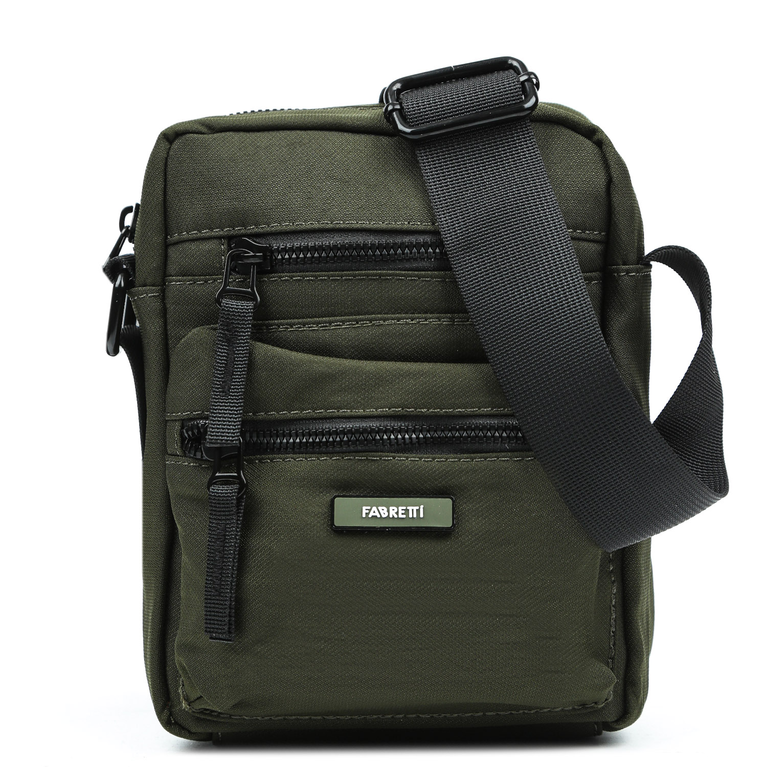 Компактная текстильная сумка через плечо FABRETTI в зеленом оттенке выполнена из влагостойкого плотного нейлона с фактурным плетением. Он практичен и прост в уходе. Основное отделение закрывается на полукруглую молнию с удобным поводком. Внутри есть 3 боковых кармана для мелочей: 2 открытых и на молнии. На лицевой стороне расположены 2 кармана на молнии. На тыльной стороне предусмотрен карман быстрого доступа на молнии. Плечевой ремень регулируется по длине, ширина - 4 см. Сумка станет незаменимым аксессуаром в любой поездке, а также гармонично впишется в спортивный и casual стиль.