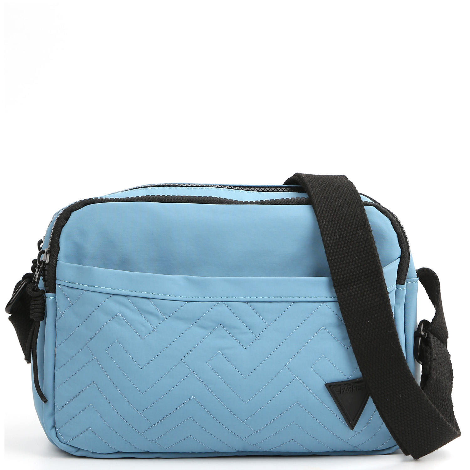 Компактная сумка через плечо FABRETTI в голубом оттенке выполнена из высокотехнологичного влагостойкого полиэстера и декорирована зигзагообразной стёжкой. Он практичен и прост в уходе. Основное отделение закрывается на молнию. Внутри 3 боковых кармана для мелочей: 2 открытых и на молнии. На лицевой стороне расположены 2 вместительных кармана на молнии. Плечевой ремень регулируется по длине, ширина - 3 см. Сумка станет незаменимым аксессуаром в поездке, а также гармонично впишется в стиль casual.