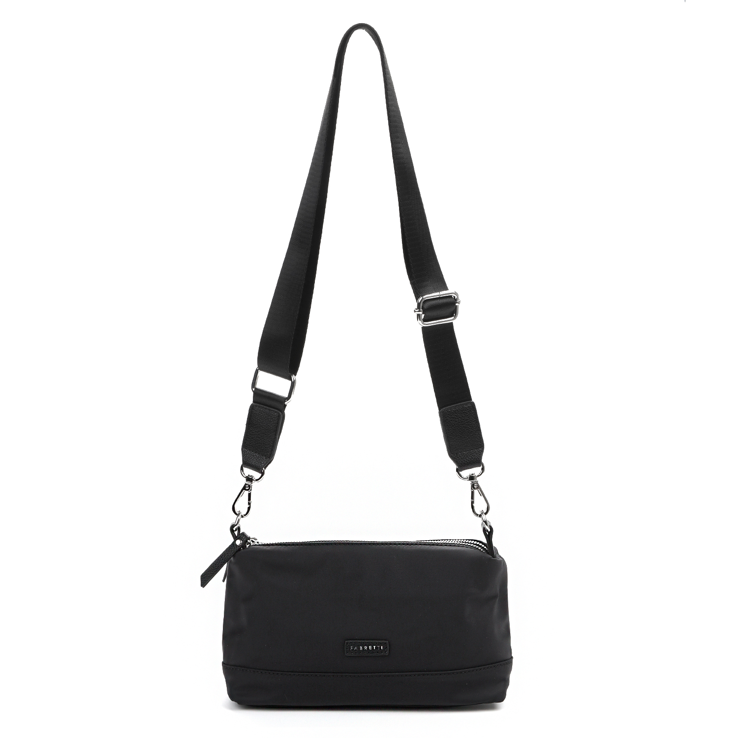 Миниатюрная женская сумка кросс-боди из коллекции итальянского бренда FABRETTI в классическом черном цвете. Компактный аксессуар, который подойдет для повседневного ношения и дополнит дорожный багаж.