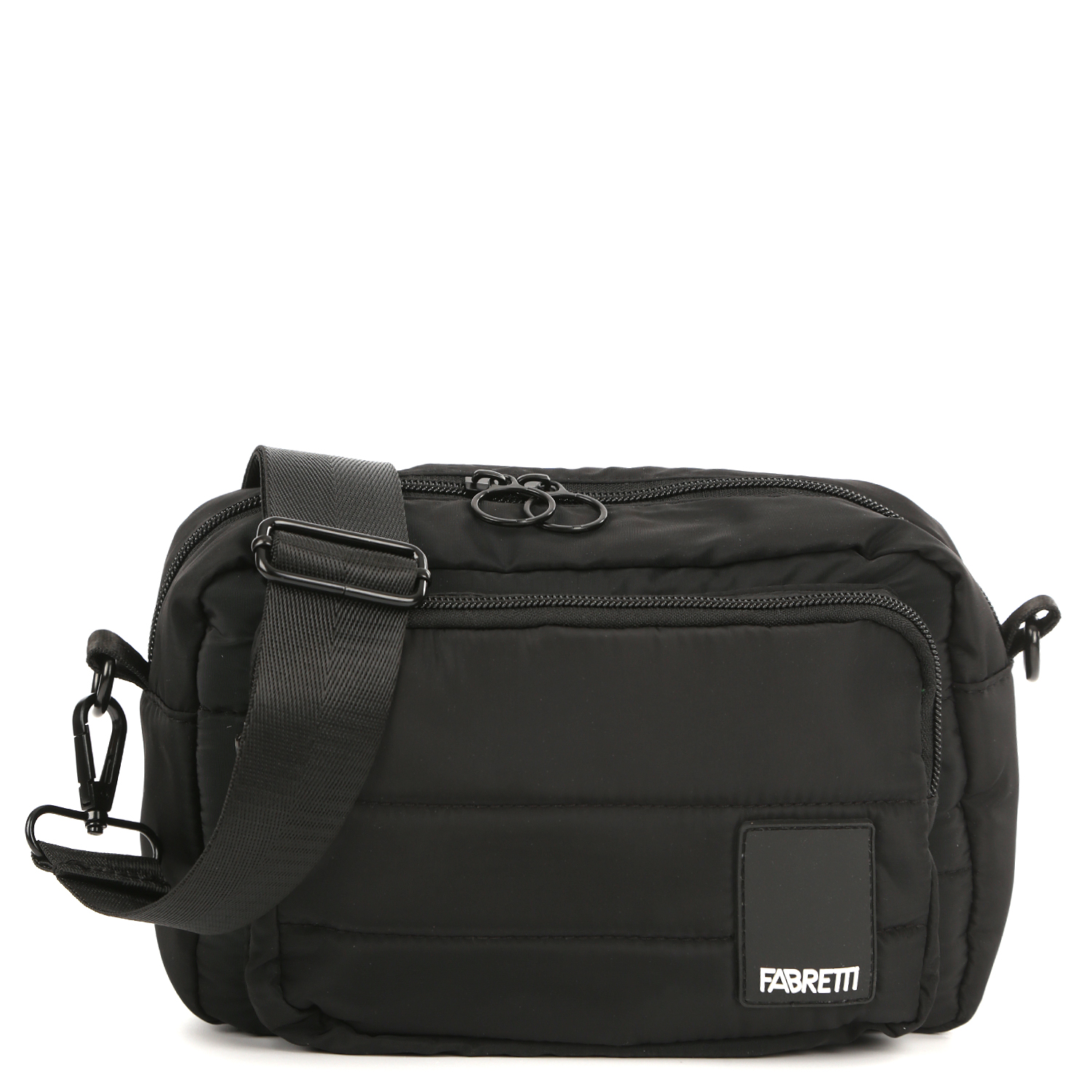 Компактная текстильная сумка кросс-боди FABRETTI в черном цвете выполнена из высокотехнологичного полиэстера стёганой фактуры. Основное отделение закрывается на полукруглую молнию с 2 бегунками. Внутри есть боковой карман на молнии. На лицевой стороне расположен вместительный карман быстрого доступа на молнии. Плечевой ремень регулируется по длине, ширина - 4 см.