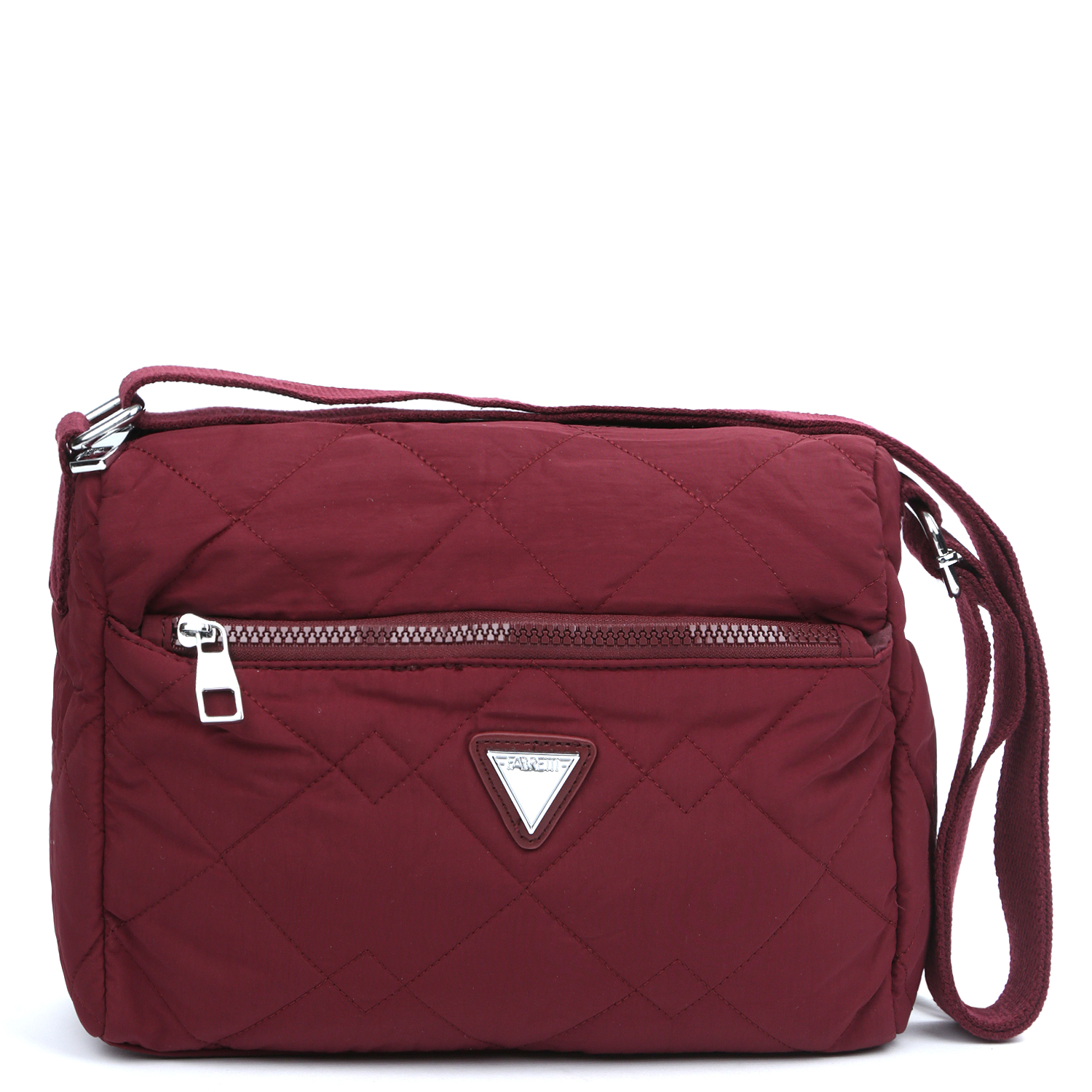 Компактная сумка на плечо FABRETTI в бордовом цвете выполнена из высокотехнологичного влагостойкого полиэстера стеганой фактуры. Он практичен и прост в уходе. Основное отделение закрывается на молнию с удобным поводком. Внутри есть 3 боковых кармана для мелочей: 2 открытых и на молнии. На лицевой стороне предусмотрен карман быстрого доступа на молнии. Текстильный плечевой ремень регулируется по длине. Сумка станет незаменимым аксессуаром в любой поездке, а также гармонично впишется в стиль casual.