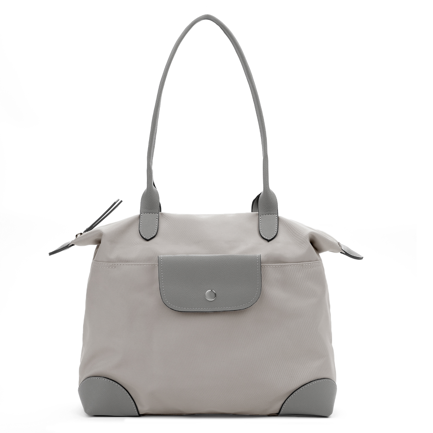 Основное отделение закрывается на металлическую молнию. У сумки одно основное отделение, разделенное надвое большим карманом на молнии. Небольшой внутренний карман застегивается на молнию. На лицевой части расположен большой открытый карман с клапаном на магните. На тыльной стороне карман быстрого доступа на молнии. Сумка дополнена длинными ручками из экокожи для ношения на плече или сгибе локтя.