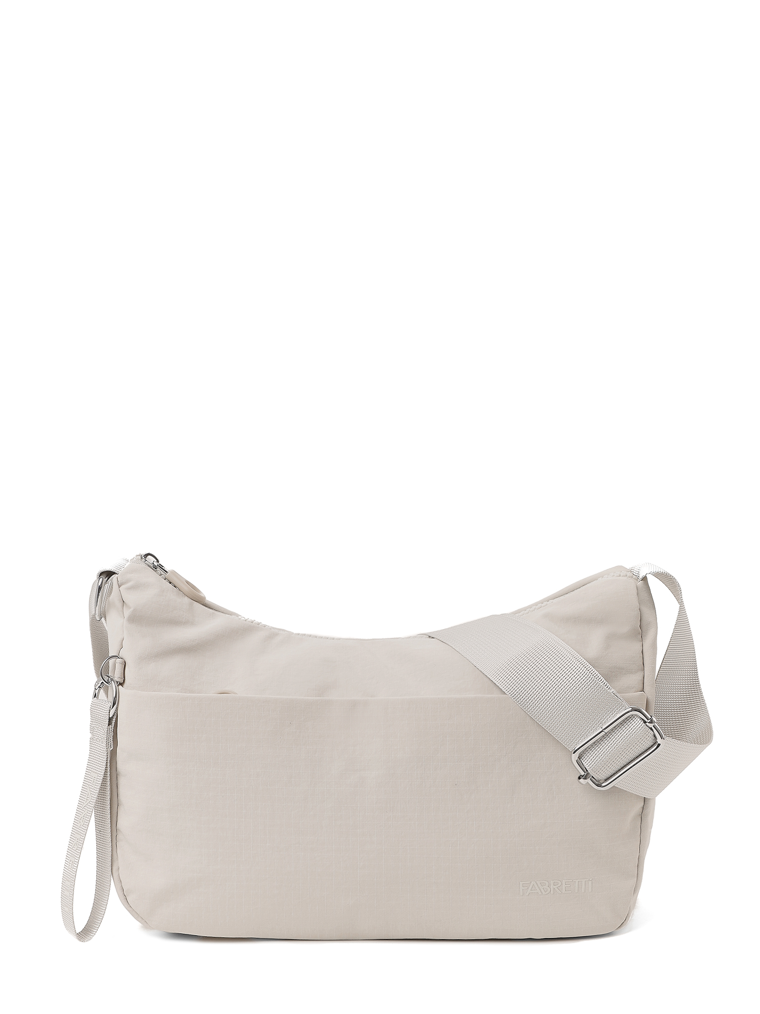 Лаконичная текстильная женская сумка итальянского бренда FABRETTI отлично подходит для повседневного использования и коротких поездок. Модель прямоугольной формы выполнена из легкой ткани с характерной фактурой в клетку в светло-бежевом цвете.