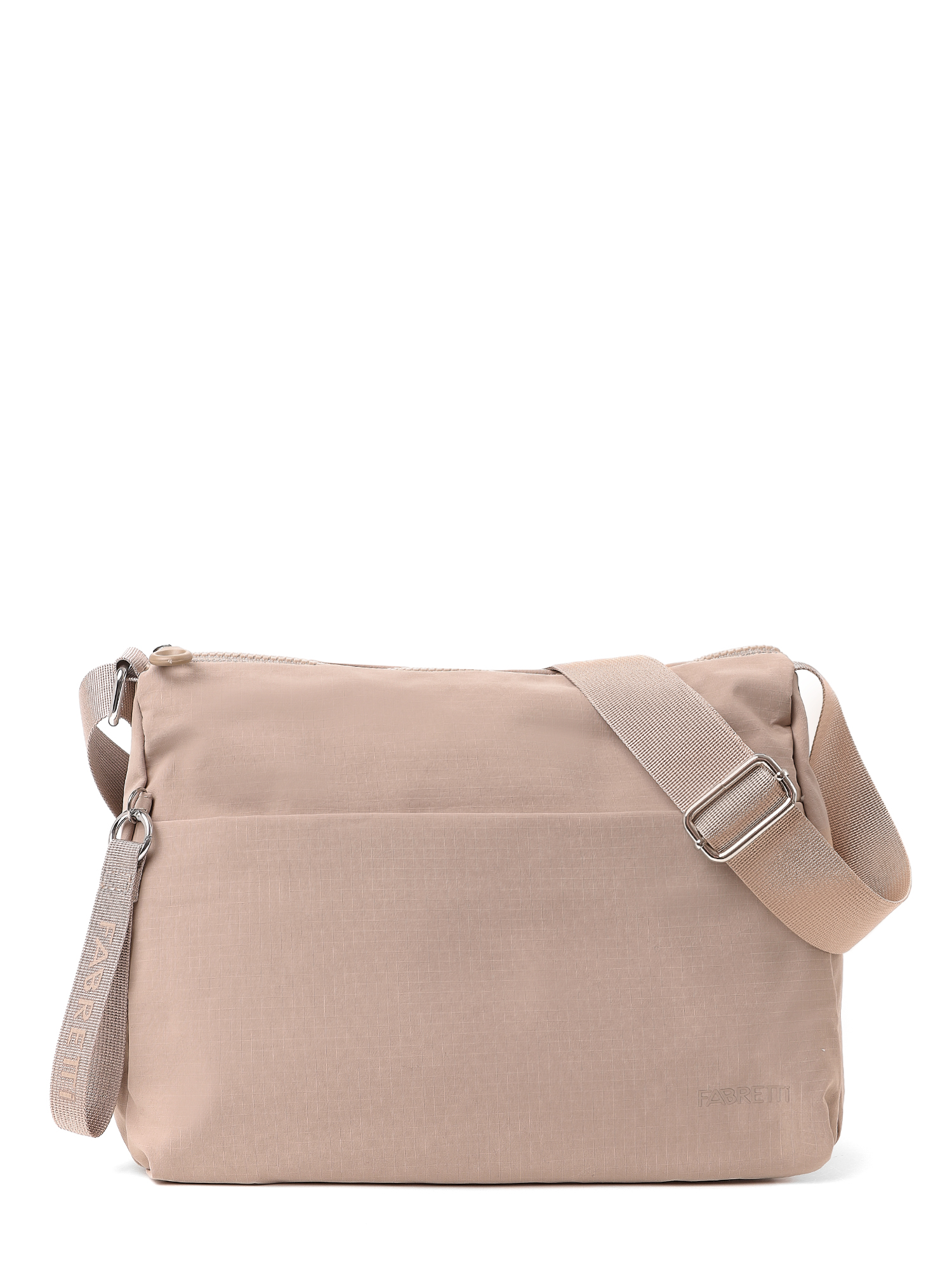 Удобная текстильная женская сумка итальянского бренда FABRETTI отлично подходит для повседневного использования и коротких поездок. Модель прямоугольной формы выполнена из легкой ткани с характерной фактурой в клетку в бежевом цвете.