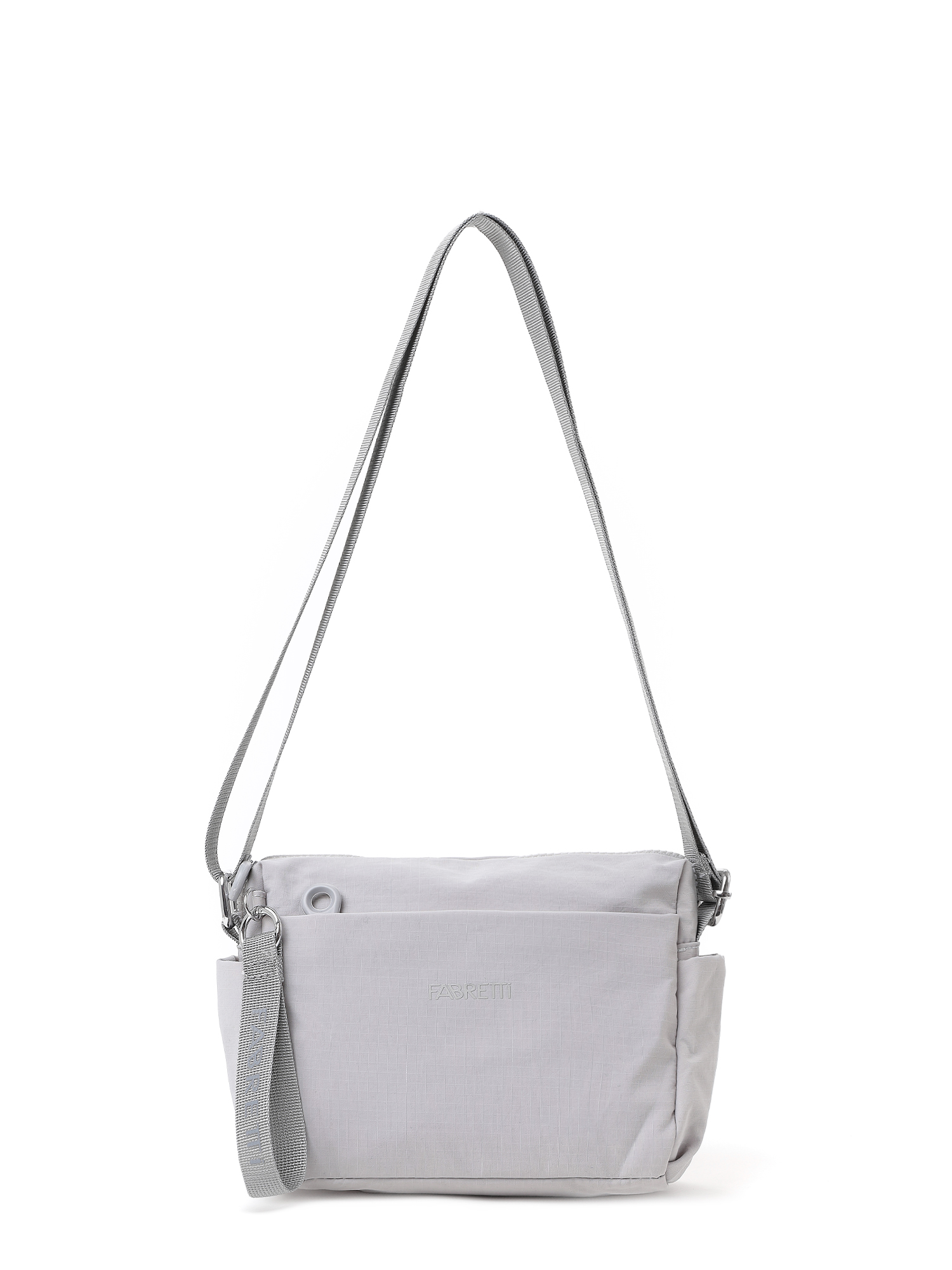 Компактная текстильная женская сумка итальянского бренда FABRETTI отлично подходит для ношения в городе и в небольших поездках. Горизонтальная модель прямоугольной формы выполнена из легкой ткани с характерной фактурой в клетку в светло-сером оттенке.