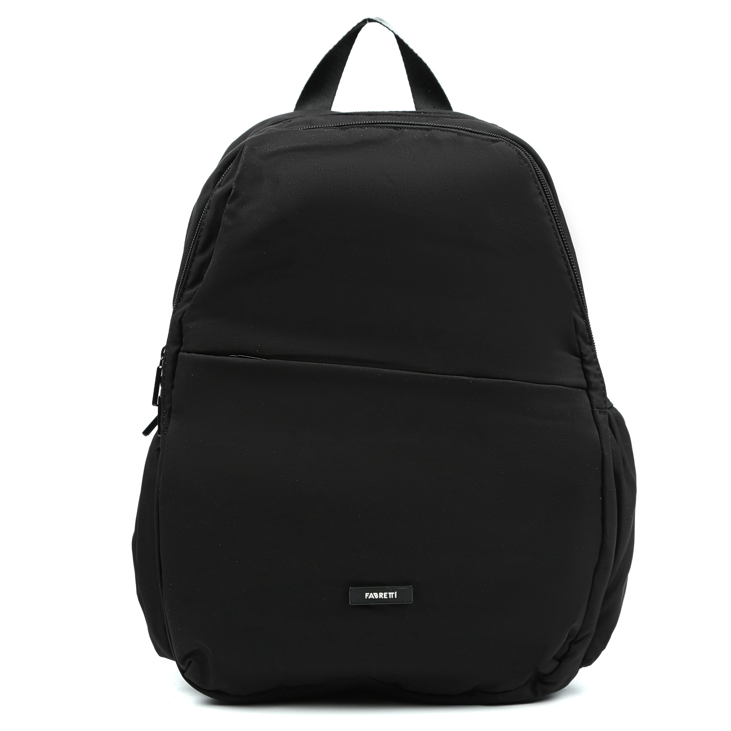 Текстильный рюкзак FABRETTI в черном цвете выполнен из высокотехнологичного влагостойкого полиэстера. Он практичен и прост в уходе. Идеально подойдет для повседневного использования и учёбы, во время поездок и занятий спортом. Основное отделение закрывается на полукруглую молнию с 2 бегунками. Внутри есть секция с мягкой стенкой для гаджетов. Второе отделение закрывается на полукруглую молнию с 2 бегунками. Внутри 2 кармана: открытый и на молнии. На лицевой стороне расположен потайной карман на молнии. По бокам есть 2 открытых кармана на резинке для бутылки с водой или зонта. Мягкие плотные лямки (ширина - 4 см) регулируются по длине. Сверху есть ручка, чтобы носить аксессуар в руке. Вмещает формат А4.