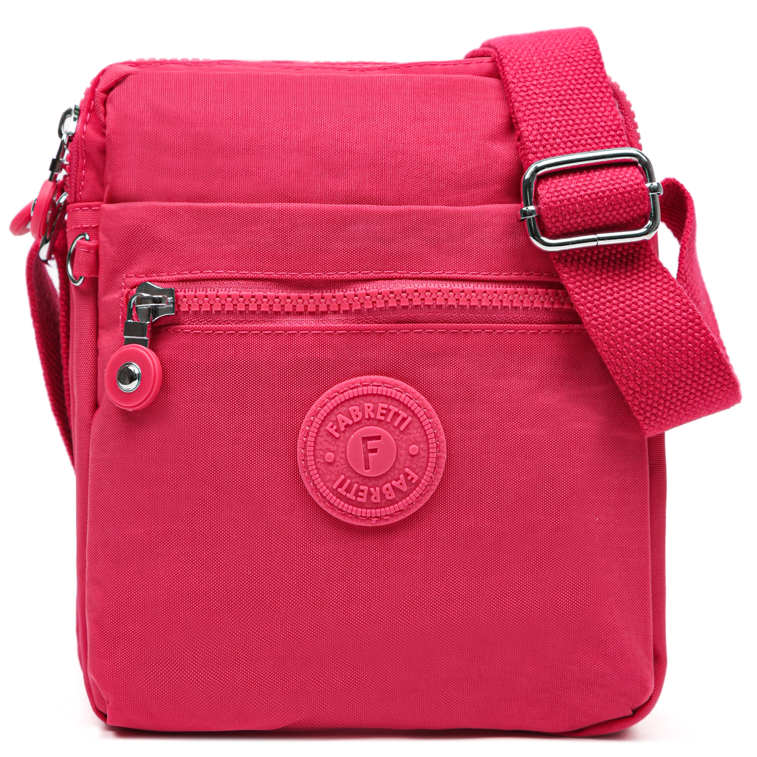 Компактная текстильная кросс-боди FABRETTI в розовом оттенке выполнена из высокотехнологичного влагостойкого полиэстера легкой жатой фактуры. Он практичен и прост в уходе. Каждое из 2 отделений закрывается на полукруглую молнию с удобным поводком. Внутри предусмотрены боковые карманы быстрого доступа. На лицевой стороне расположены 2 кармана: на магнитной кнопке и на молнии. На тыльной стороне есть карман быстрого доступа на молнии. Текстильный плечевой ремень регулируется по длине, ширина - 3 см. Сумка станет незаменимым аксессуаром в любой поездке, а также гармонично впишется в спортивный и casual стиль.