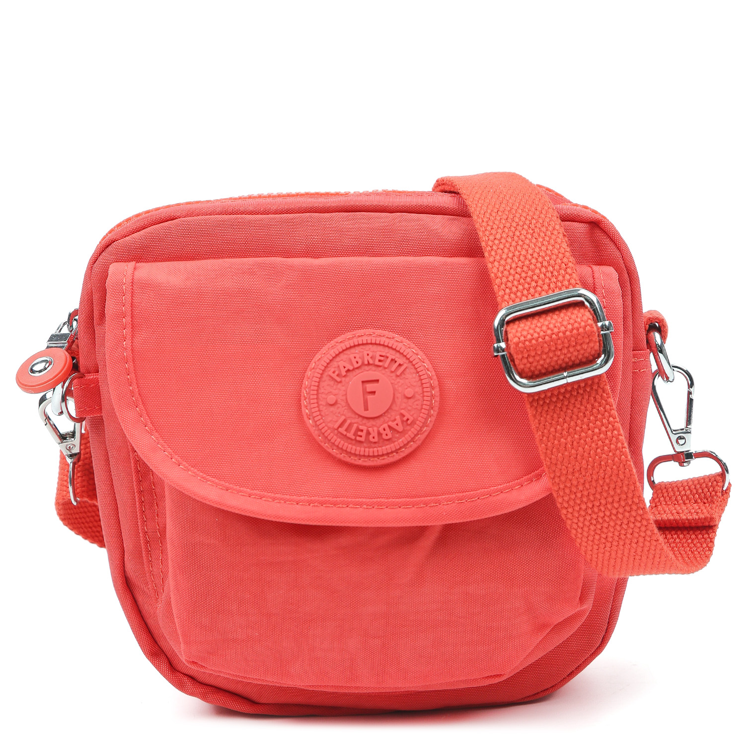 Текстильная сумка FABRETTI в красном оттенке выполнена из высокотехнологичного влагостойкого полиэстера легкой жатой фактуры. Он практичен и прост в уходе. Модель отличается компактным размером и продуманной системой хранения. В сумке 2 отделения, каждое из которых закрывается на полукруглую молнию. Внутри есть 2 боковых кармана для мелочей: открытый и на молнии. На лицевой стороне расположен карман, закрывающийся клапаном с магнитной кнопкой. На тыльной стороне предусмотрен карман на молнии. Съемный плечевой ремень регулируется по длине, ширина - 2,5 см.