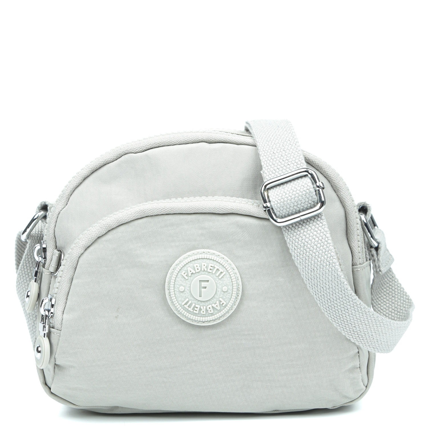 Текстильная сумка FABRETTI в сером оттенке выполнена из высокотехнологичного влагостойкого полиэстера легкой жатой фактуры. Он практичен и прост в уходе. Модель отличается компактным размером и продуманной системой хранения. В сумке 2 отделения, каждое из которых закрывается на полукруглую молнию. Внутри есть 2 боковых кармана для мелочей: открытый и на молнии. На лицевой стороне расположен карман на молнии. На тыльной стороне предусмотрен карман быстрого доступа на молнии. Плечевой ремень регулируется по длине, ширина - 2,5 см.