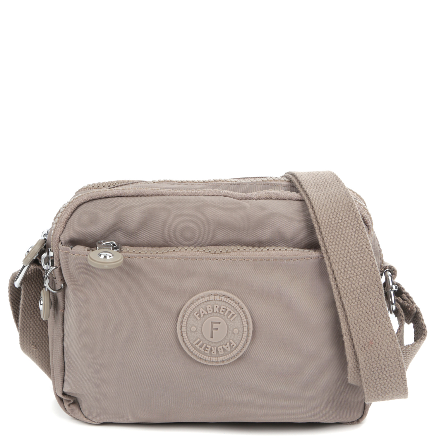 Текстильная сумка кросс-боди FABRETTI в бежевом оттенке выполнена из высокотехнологичного влагостойкого полиэстера легкой жатой фактуры. Он практичен и прост в уходе. Модель отличается компактным размером и продуманной системой хранения. В сумке 3 отделения, каждое из которых закрывается на полукруглую молнию с удобным поводком. Внутри центрального отделения есть 3 боковых кармана для мелочей: 2 открытых и на молнии. Карабин на шнурке поможет быстро найти ключи в сумке. На лицевой стороне расположен карман быстрого доступа на молнии. На тыльной стороне также предусмотрен карман на молнии. Текстильный плечевой ремень регулируется по длине, ширина - 2,5 см.