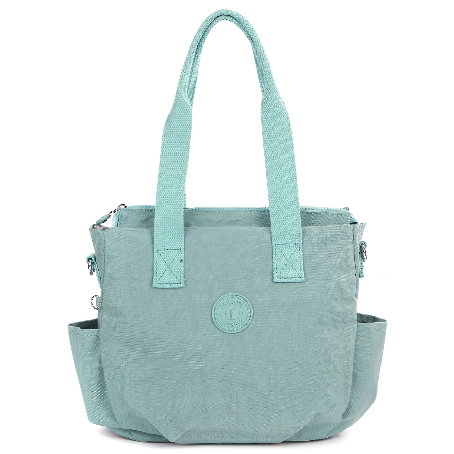 Текстильная сумка на плечо FABRETTI в насыщенном голубом оттенке выполнена из высокотехнологичного влагостойкого полиэстера легкой жатой фактуры. Он практичен и прост в уходе. Основное отделение закрывается на молнию. Внутри есть 3 боковые кармана: 2 открытых и на молнии. На тыльной стороне предусмотрен карман быстрого доступа. По бокам расположены открытые карманы. Удлиненные ручки позволяют комфортно носить сумку на плече или в руке. В комплекте идет съемный текстильный ремень, регулируемый по длине, ширина - 3 см.