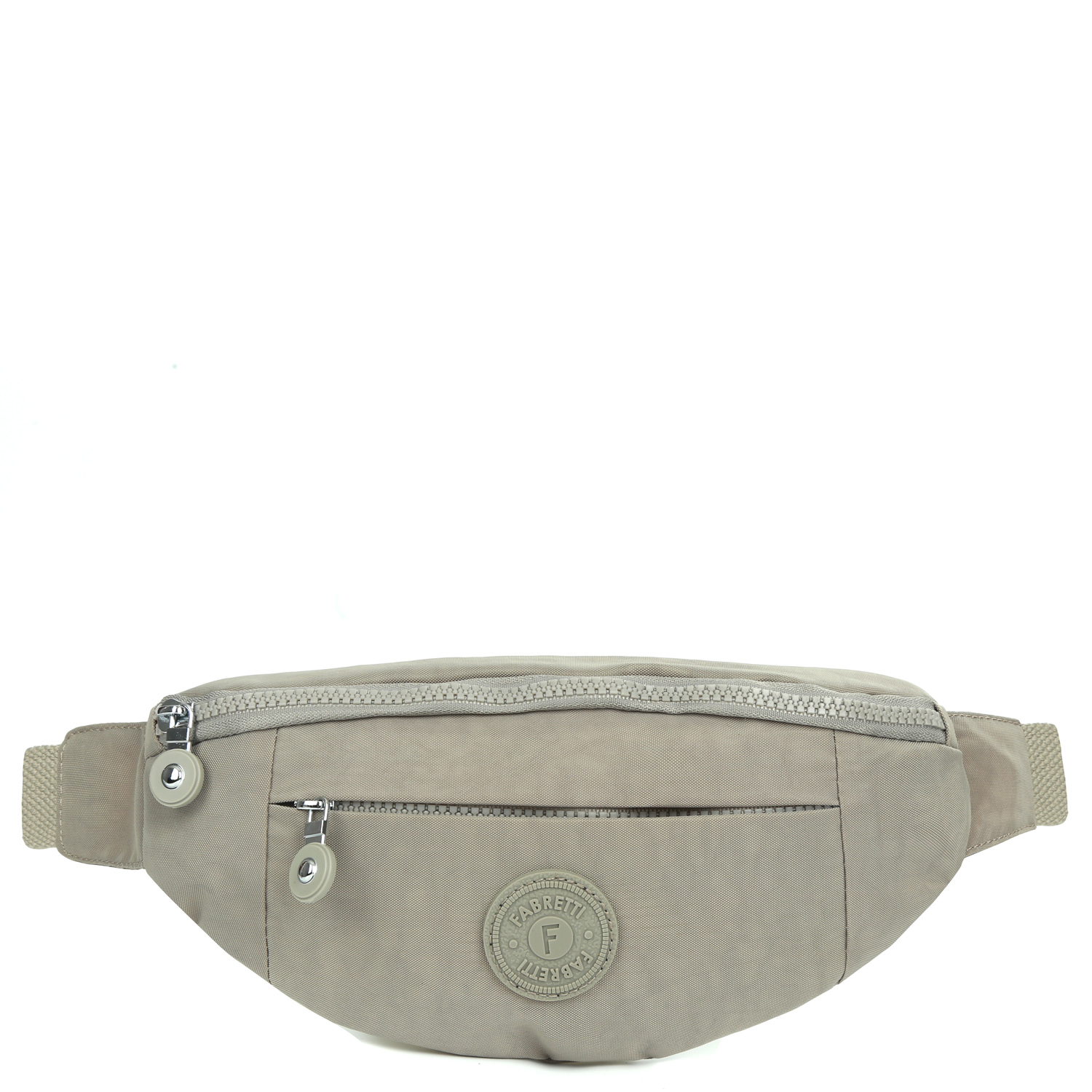 Текстильная поясная сумка FABRETTI в темно-бежевом оттенке выполнена из высокотехнологичного влагостойкого полиэстера легкой жатой фактуры, снабжена продуманной системой хранения, компактна. Основное отделение закрывается на молнию. На лицевой стороне расположен карман быстрого доступа на молнии. На тыльной стороне также предусмотрен карман быстрого доступа на молнии. Текстильный ремень, шириной 3 см, на замке фастексе регулируется по длине и позволяет носить аксессуар как на поясе, так и через плечо.
