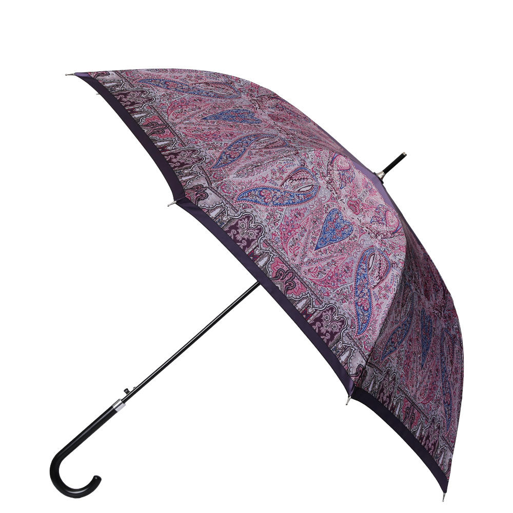 Женский зонт-трость от итальянского бренда Fabretti. Конструкция модели выполнена из стали и фибергласса, поэтому устойчива к сильному ветру. Насыщенные и яркие оттенки фиолетового цвета дополнят любой современный образ. Эксклюзивный дизайнерский принт зонта с роскошным рисунком "пейсли" сделает вас неотразимыми в любую непогоду! Материал купола – сатин. Он невероятно изящен, приятен на ощупь, обладает высокой прочностью, а также устойчив к выцветанию. Эргономичная ручка сделана из высококачественного пластика-полиуретана с противоскользящей обработкой!
